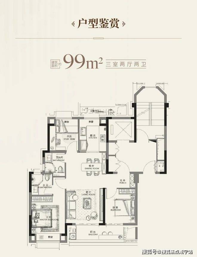 高层99㎡: 进阶版飞机大三房