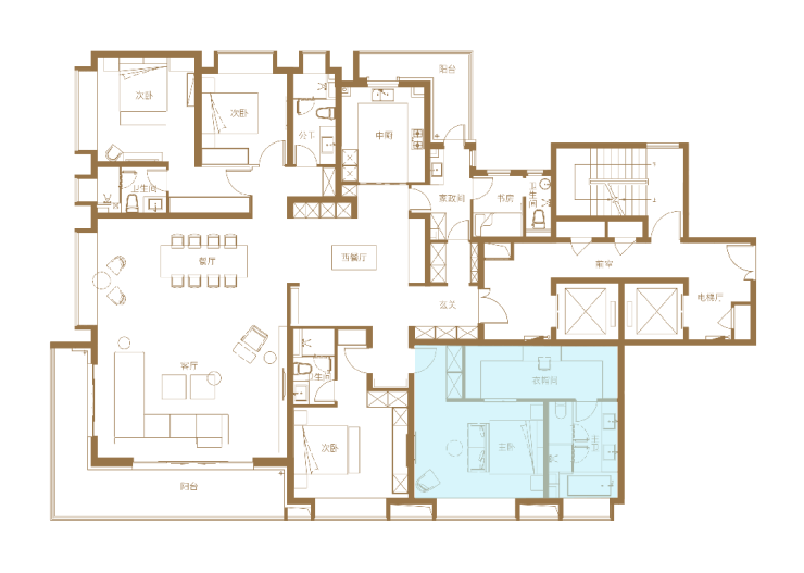 双洄游动线+多功能间+家政套间设计,有效释放全家人大量储物收纳所需空间,让家中礼序不为繁琐纷扰。