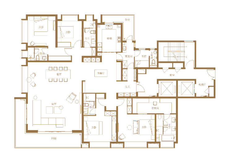 金融湾·晶建面约325平大平层约75平奢阔客厅,接近普通的两居室的面积,设置了临港罕见的LDKB中西双厨、三厅设计,客餐厨阳台四位一体化,兼顾开放共享与社交,奢华与实用完美结合,成就高净值人群的社交宴饮气场。