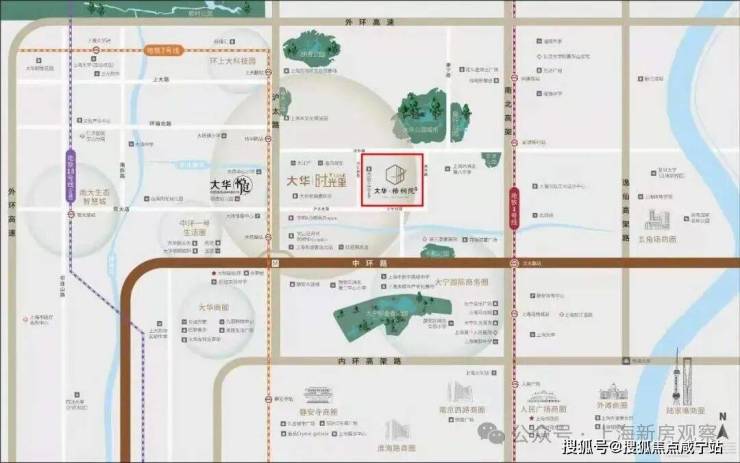 宝山作为上海“北转型”战略要地,大场板块依托南大智慧城规划,正加速产城融合。项目周边教育(行知小学、大华中学)、医疗(华山医院北院)、商业(宝山日月光、大华虎城)环伺,生活成熟度与未来潜力并存。西侧紧邻规划商业区,消费升级触手可及。