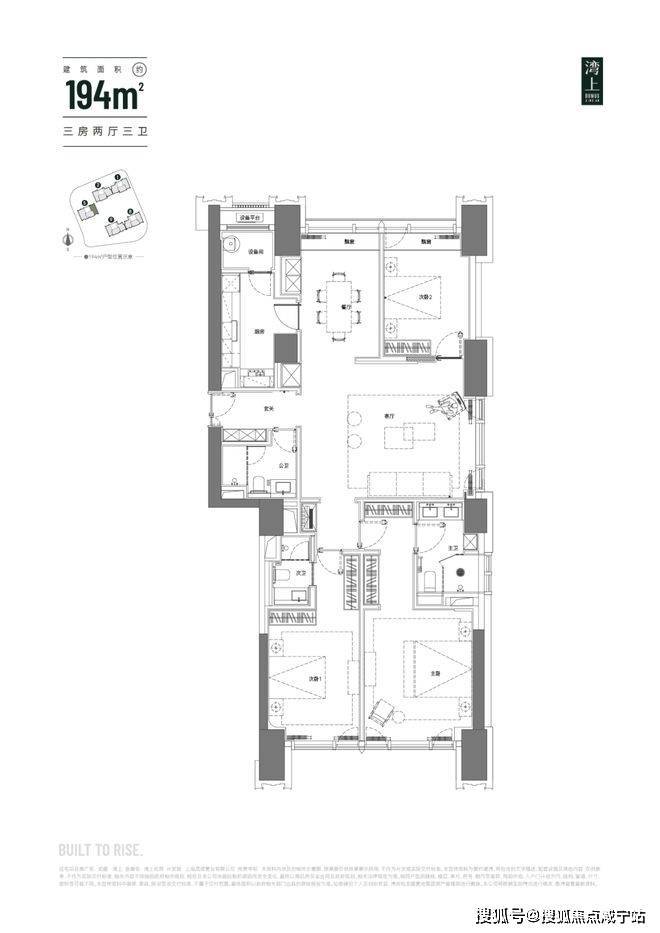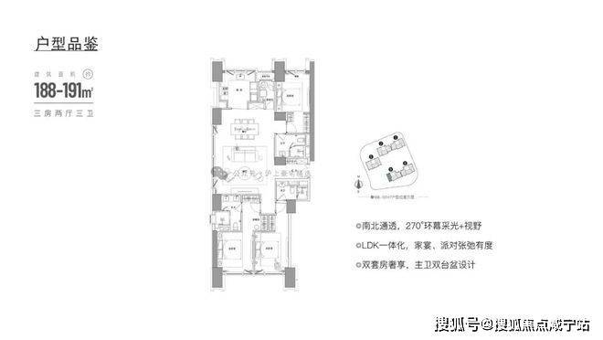 建面约194㎡3房2厅3卫户型