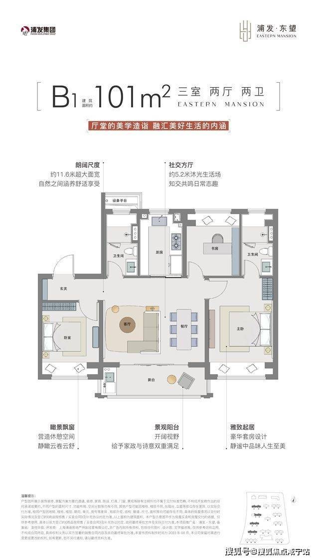 B1户型更是罕见的在这个面积段,做到了横厅设计,进一步放大尺度感,简直是必抢的存在