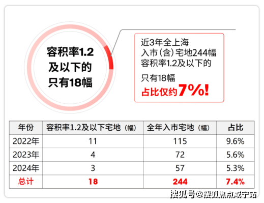 据统计,在2022年容积率1.2以下的宅地还有11块入市,2023年锐减至4块、2024年则只有3块,3年合计18块占比总市场仅约7%,稀缺属性爆表。