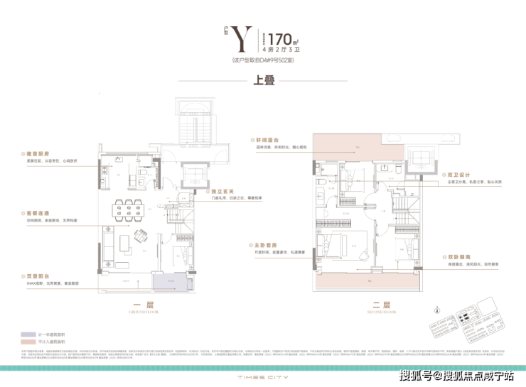 上叠,南向双阳台+南北双露台:一般上叠只有一个北向露台+一个南向阳台,仅此而已。