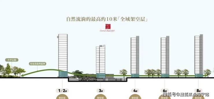 这个标准比不少甲级写字楼还高,几乎跟国金中心、柏悦酒店那种顶级商用空间看齐了,这样的架空层高度,天然的让建筑悬浮在植被之上,每户都是景观最C位。