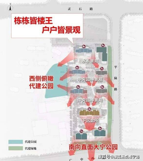 从规划图来看,项目前排可直面大宁灵石公园无敌景观;而办公部分设置在地块东北侧,也有隔断进行出入口区分,对住宅部分来说几乎没有影响。