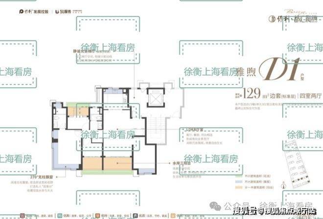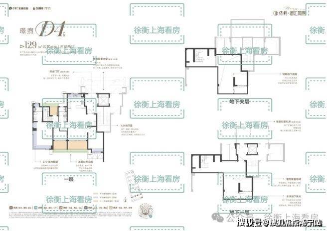 建面约D1户型129㎡4房2厅2卫
