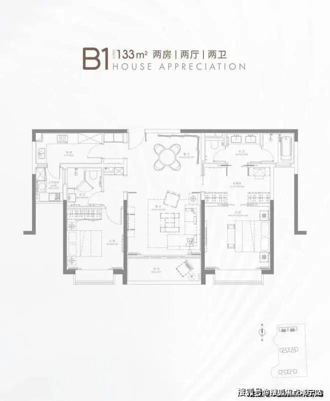 另外,B1、B2户型也是上车的优选,B1户型,建面约133㎡做两房,将舒适性放到了最大!双套房设计,主卧更是超级大套房,面宽达到约4.5米,总建面近58㎡!