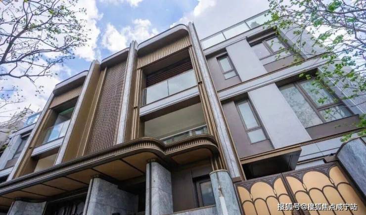 维斯康白石材:搭配仿铜色铝板,奢华演绎立面层次,弧形设计对标老静安康定壹拾玖;