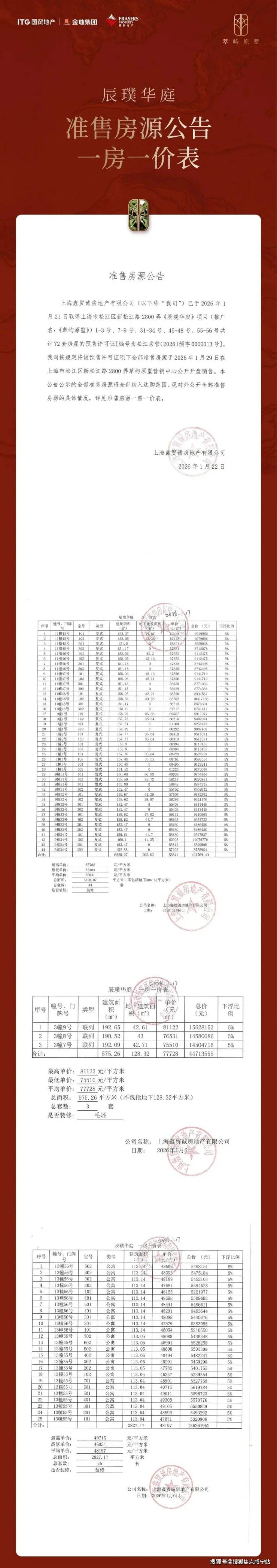 在2025年2月举行的上海首轮土拍中,国贸+金地+星狮地产联合体击败建发,以8.15亿的总价,溢价率13.98%,拿下松江新城05a-24号地块(即萃屿原墅),地块成交楼板价26216元/平,装标不低于2500元/平。