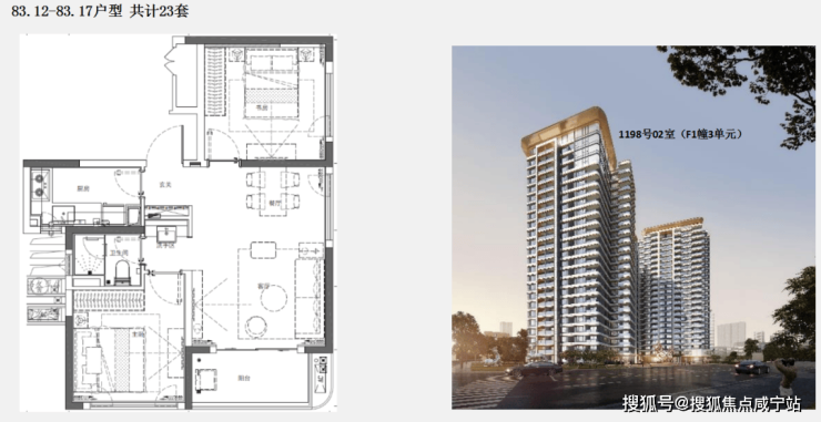 该项目一期于2023年7月取证,均价约9.96万/㎡,推出建面约83-198㎡的2-4房房源。主力户型为108㎡的三房两厅两卫,得房率约80%。
