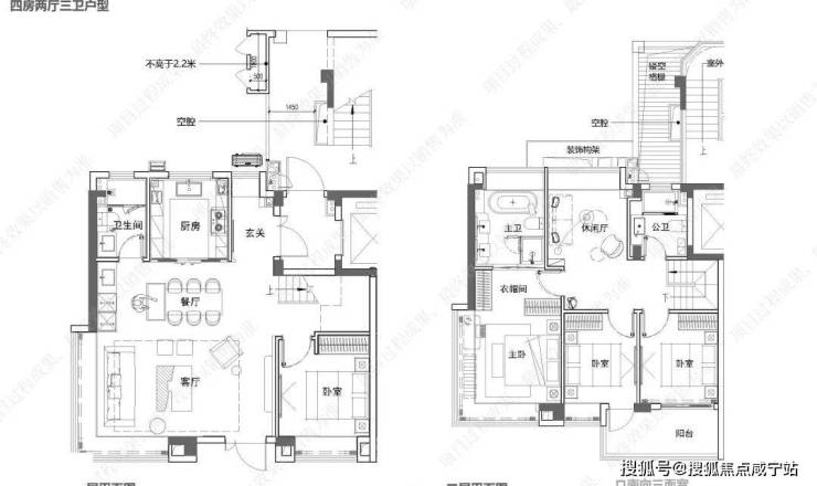 这个户型亮点在于LDBK一体化,做了一个大横厅,一方面尺度感更强,另一方面,可以根据需要设计成茶室、工作台、游戏间等等。