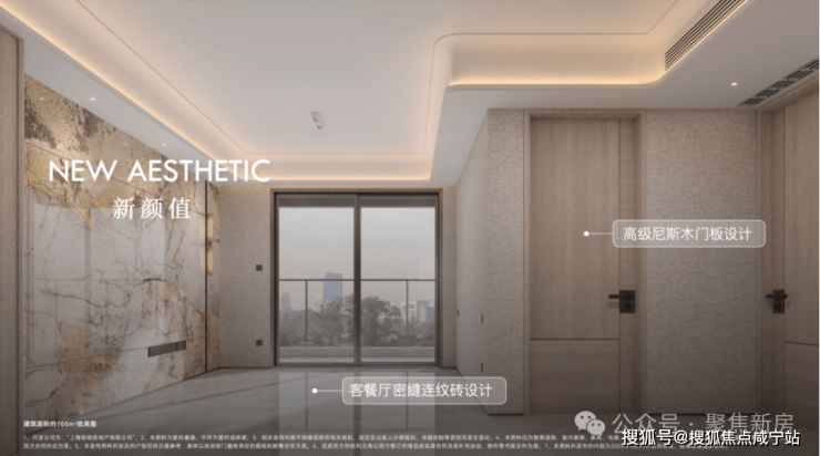项目大量使用奢石设计,客厅四边弧形天花、主卧树叶拼花地板、精致优雅的骨骼线设计,都是开发商花费更大成本和耗材去呈现更美的视觉体验。