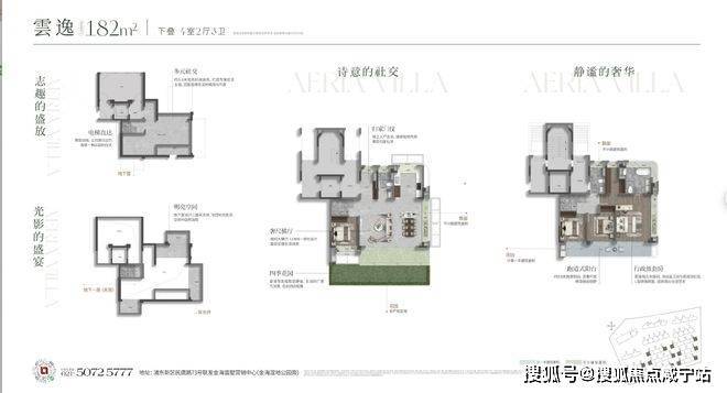 叠墅核心亮点:约 9.8 米三面宽、贯通式南向阳台、270° 转角采光;下叠带庭院 + 挑高地下室,上叠带露台,实得率最高161%(182㎡下叠实得约 292㎡),空间性价比极强