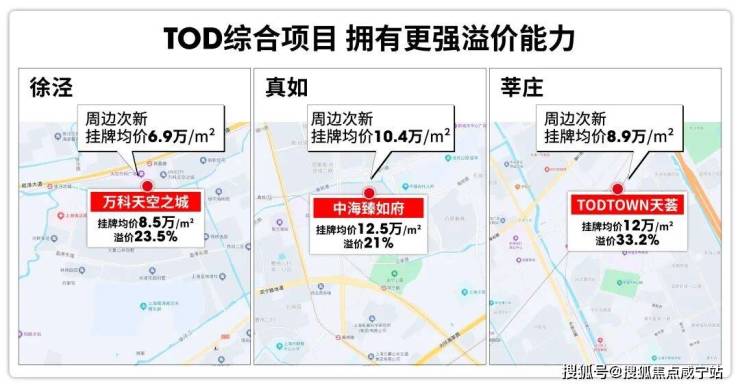 相比普通楼盘,TOD综合项目本身也有较强的溢价能力,莘庄天荟、万科天空之城等TOD项目都已给出有说服力的结论。