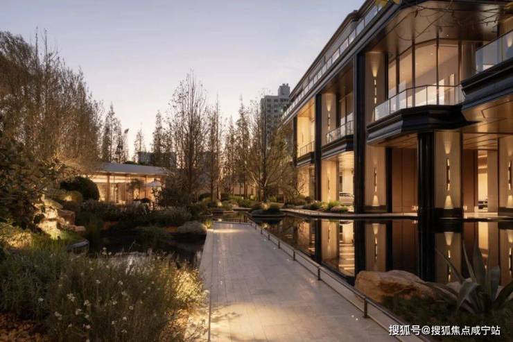 三层归家动线:从地面景观层到架空层,再到入户层,穿越绿植、光影与水景,步步进入私域。