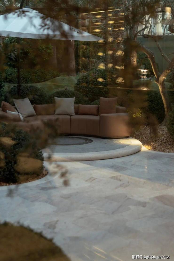 面向主建筑群右侧,是名为Argento的意大利花园。园如其名,以银叶橄榄为主题树种,营造出银光微烁、如月华般柔和优雅的意式氛围。花园以私宴厅为核心,银叶橄榄围合出亲切的尺度。