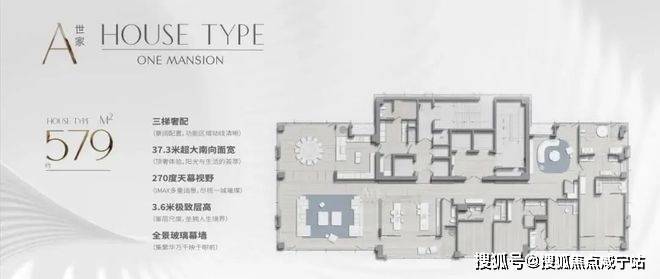 - **户型设计**:主力434-580㎡大平层,一层一户设计,动静分离,全套房布局,生活区朝南,270°环幕视野,短进深大面宽实现极致采光。
