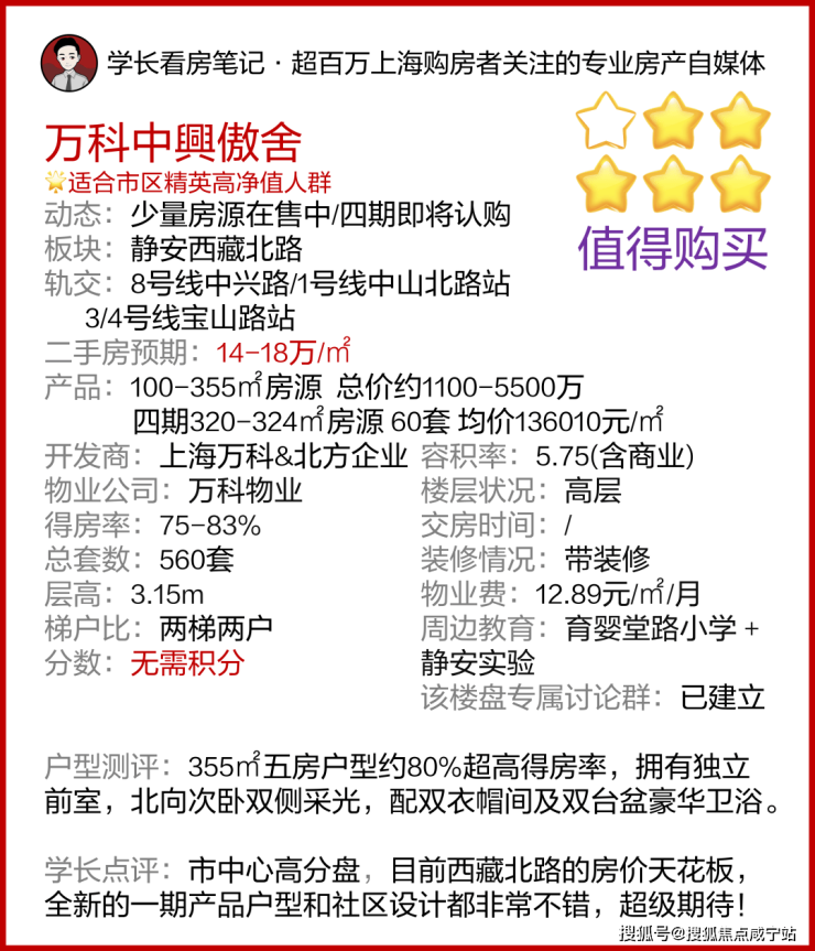 万科中興傲舍从上一次开盘至今,市场变化很大,新房价格疯涨,黄浦豪宅全线迈进20万/平;内中环徐汇滨江飙到19.5万/平,与项目同纬度的虹口内环冲击18万+/平;甚至不少内中环项目要卖到14-16万/平。(来源网上房地产以及楼板价倒推)