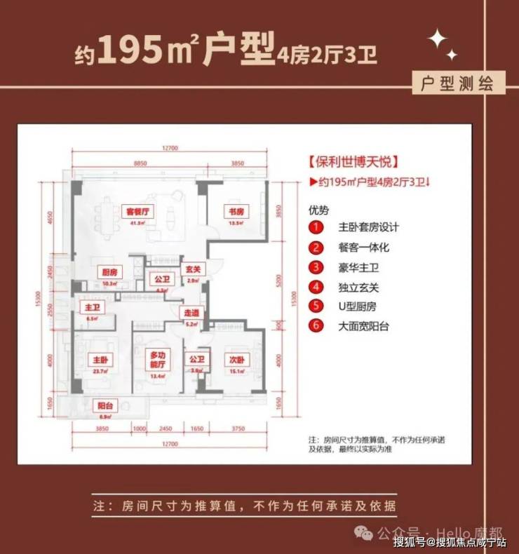 类一梯一户,享私密入户空间。极致景观面,比如建面约195㎡北向面宽达到约12.5米,堪称IMAX观景面,和黄浦某顶豪275户型面宽数据相近。北向卧室面宽超3.7米,与同面积豪宅的主卧尺度相似。