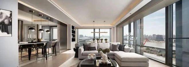 建面约240㎡边套,采用L型转角落地窗,打造了270°环幕瞰江视野,无论身处客厅、餐厅,都能以不同角度眺望黄浦江的波光粼粼。