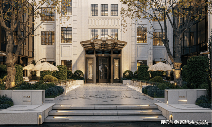 首先是归家仪式感打造上匠心十足!设计了南北2个酒店式归家入口,其中南侧入口结合保留风貌建筑,以风貌庭院式设计,以“穿过一道 100 年的风景,便回到了家宅”为主题,项目强调从城市街道到社区庭院,引领入户的诗意渐进体验,每日上演从历史文脉到私域心灵的诗意回归,惬意万分~