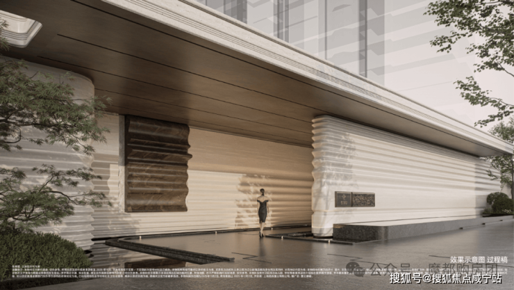 小区采用全人车分流设计,主入口位于西侧佑仁路,通行便捷有序。大门庄重大气,门头通过横向感拉槽与奢石景墙巧妙结合,搭配序列感植物,营造秩序感与昭示性。主入口三进式礼序,仪式感与功能性兼备。一进为酒店式落客和车马厅,以礼遇之姿迎接业主归家,大堂尽显尊崇;二进静谧水院、会客廊架、下沉庭院相互呼应,形成意境洄游空间;三进风雨连廊相伴,带来伴水归家惬意体验。次入口在东侧,方便出行。