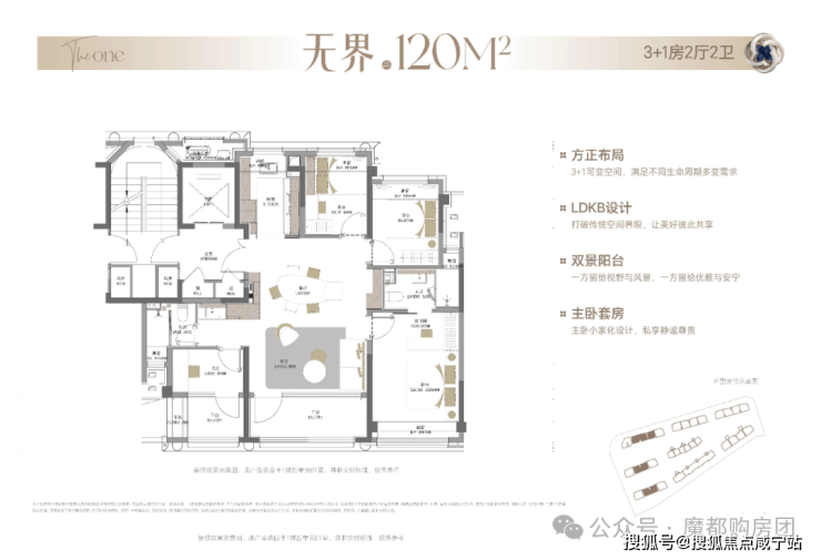 整体布局与140㎡户型基本一致,双南向阳台、独享电梯厅、6飘窗等户型拓展面积超过18㎡!