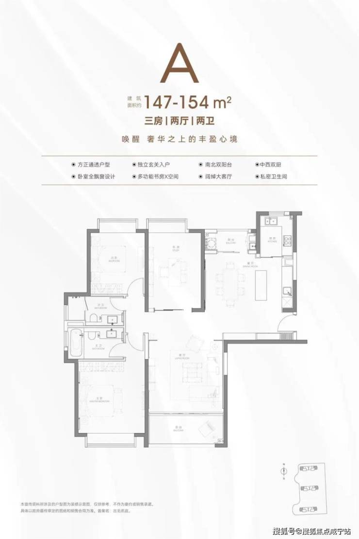 这次供应的主力户型是3个,一个是约150、154㎡左右的大三房两卫