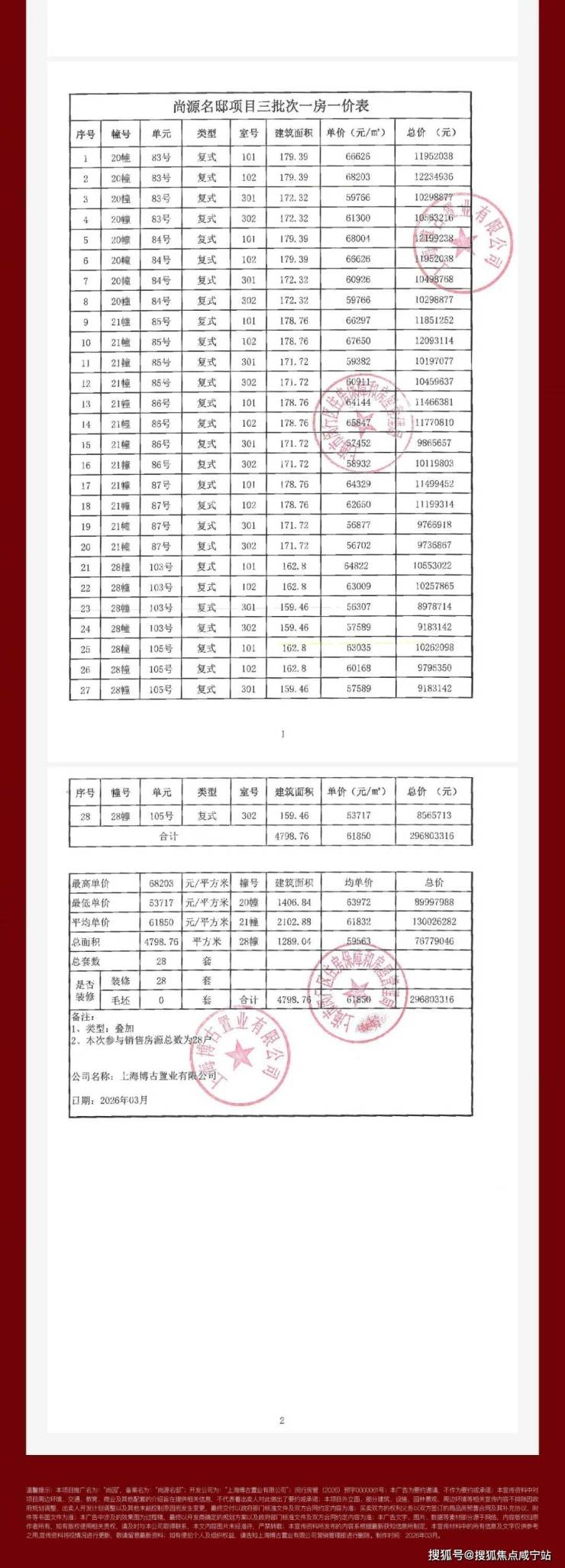 二批次一房一价表