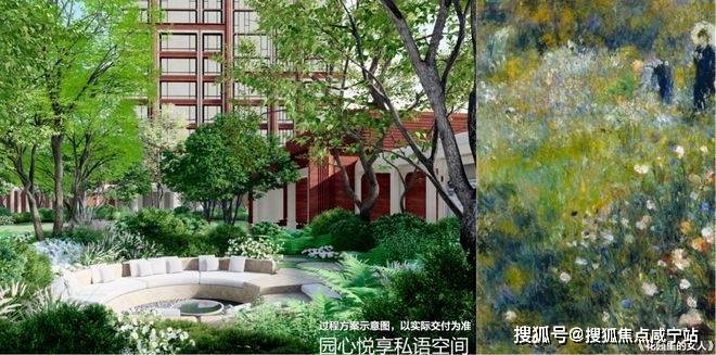 首先,外滩瑞府项目打造了约3000㎡的沉浸式中央公园,化用印象派艺术,打造了6大艺术公园