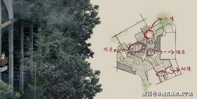从流出的设计手稿看来,未来社区内会将平面景观垂直化,点缀名木绿植,整个意境更生动。