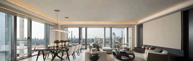 建面约240㎡边套,采用L型转角落地窗,打造了270°环幕瞰江视野,无论身处客厅、餐厅,都能以不同角度眺望黄浦江的波光粼粼。
