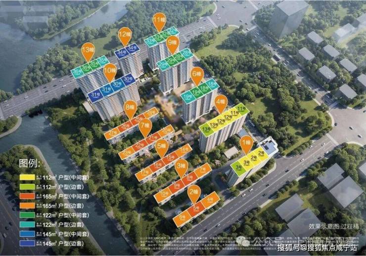 根据最新设计方案显示,项目分南北两个地块,北地块为大户型+叠加,南地块为小户型+叠加。