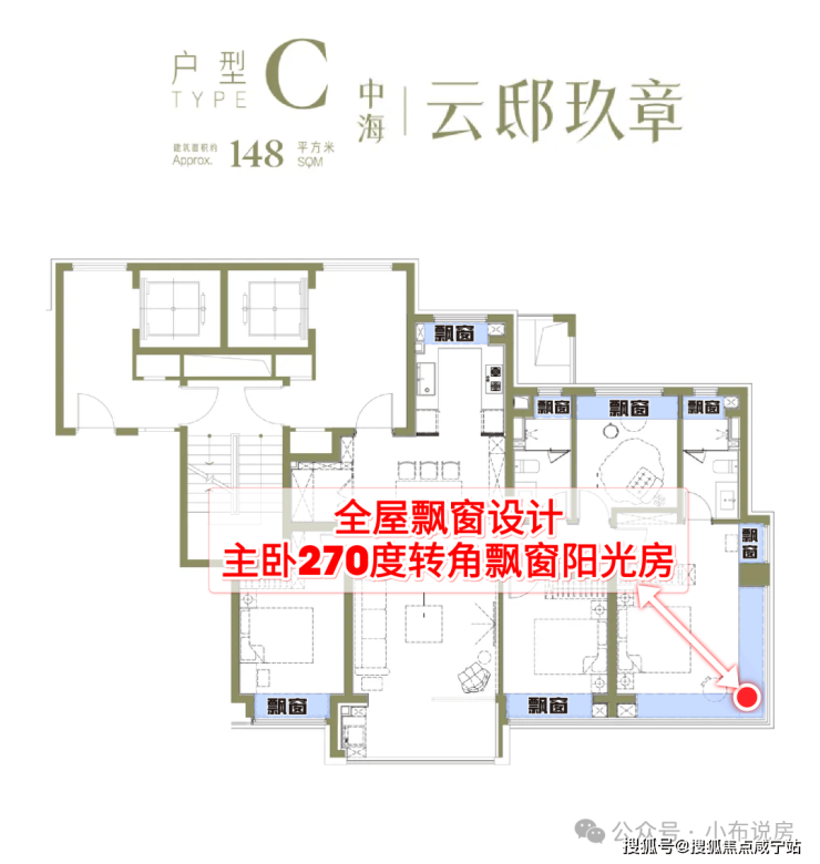 亮点④全屋飘窗设计,主卧270度转角飘窗阳光房!