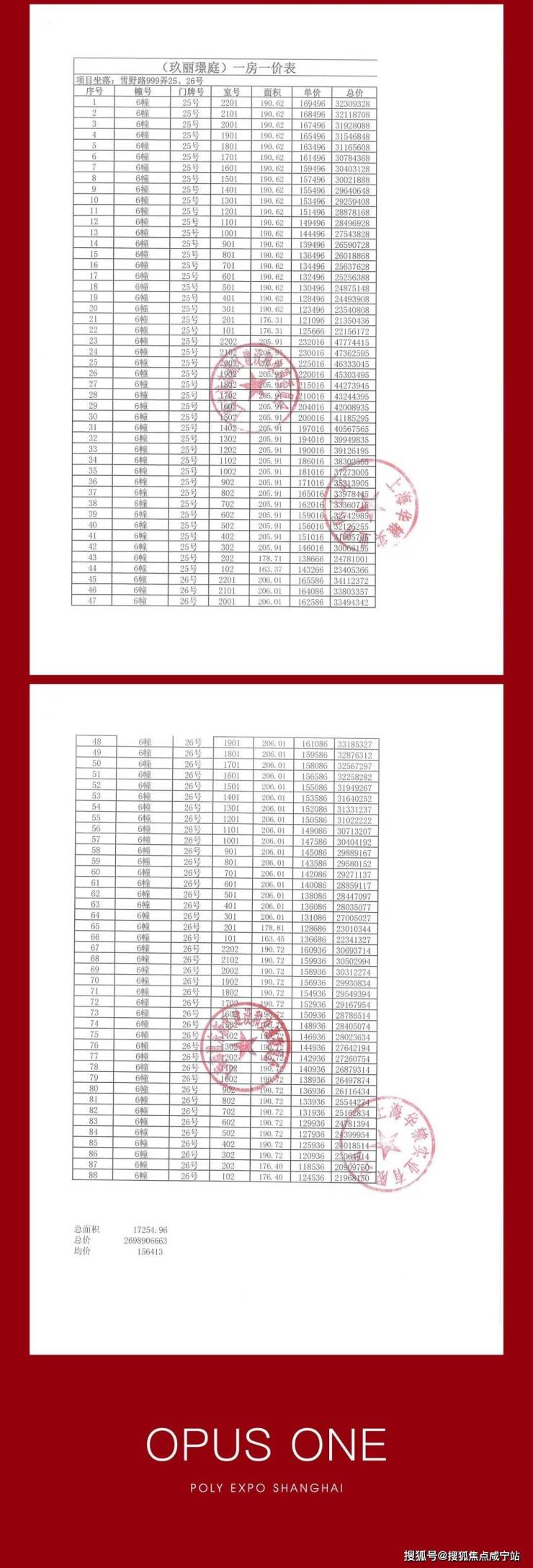 一房一价表
