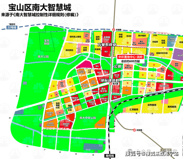 产业能级,赋能城市加速腾飞。南大智慧城,南大作为当前上海重点建设城区之一,被钦定为“南北转型”核心承载区、上海科创中心主阵地,总开发面积近630公顷,总规划建面约540万方,超越了350万方的前滩,是上海市中心城区少有的转型条件成熟、可成片开发区域。
