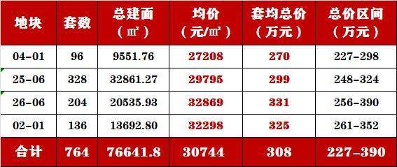 更“炸”的是,其中764套建面约100㎡3房,均价仅30744元/㎡,套均总价308万;其中04-01地块该户型均价27208元/㎡,套均总价约270万,总价最低约227万,最高不超过300万