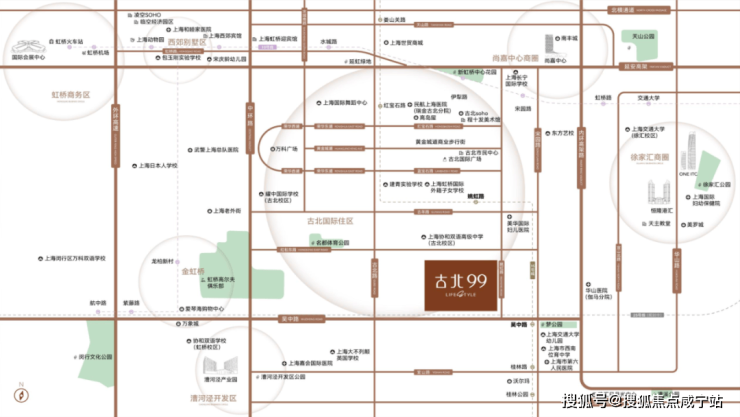 古北99售楼处电话:400-8800-703地处金虹桥板块。金虹桥板块站位“金钥匙”闵行,紧靠徐汇、长宁等老牌豪宅区,北邻长宁天山板块,南接漕河泾高新技术开发区,西紧靠大虹桥。“金钥匙芯”非金虹桥莫属。