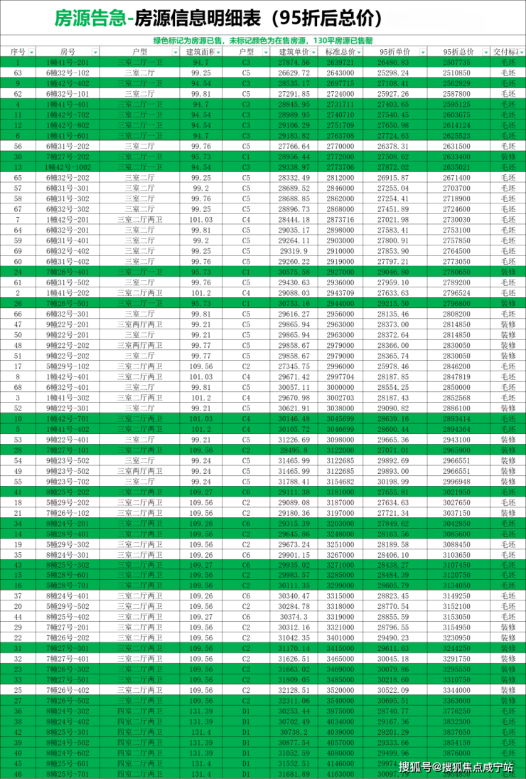 房源在售信息明细以售楼处销控为准!三层优惠活动!折 返 送!