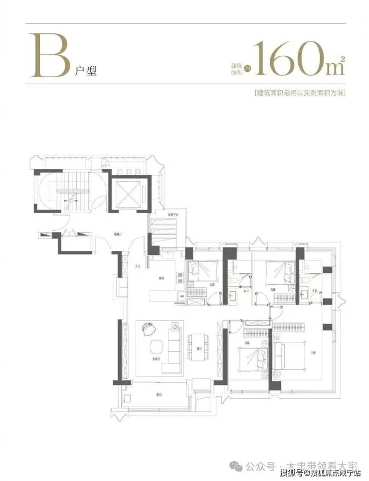 160㎡四房:四开间朝南,大横厅设计
