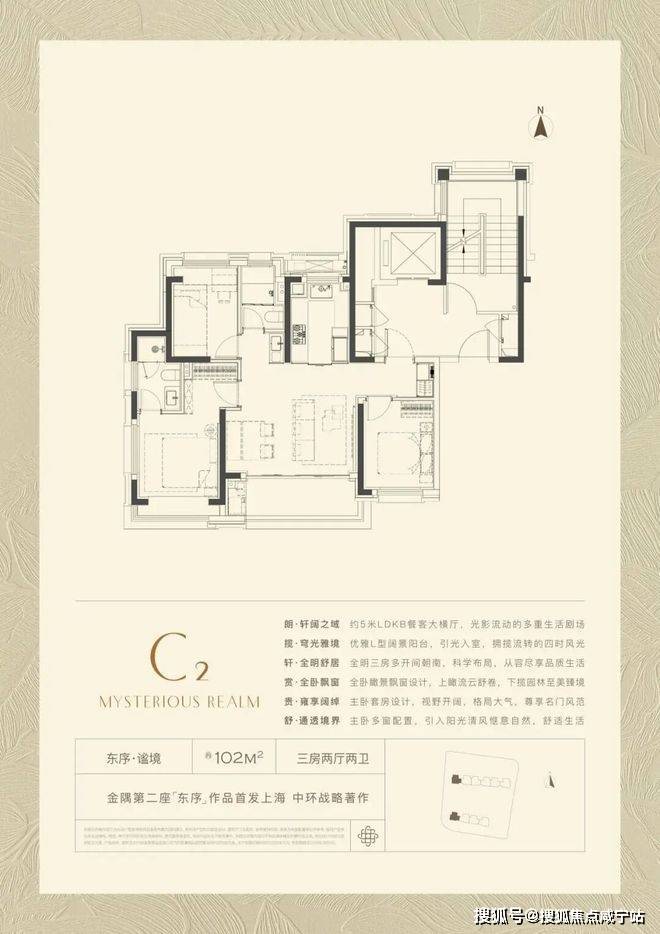 飞机式动静分区,约5米宽厅衔接转角阳台引景入室,主卧套房与两次卧分布四周,完美契合三口之家的多元生活场景。