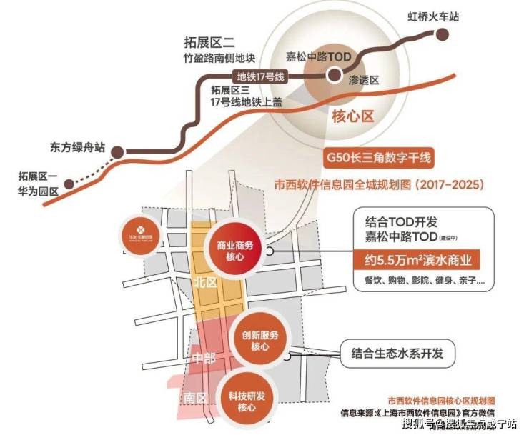 嘉松中路TOD以市西软件信息园为科创主体,在长三角绿洲智谷·赵巷(目前一期已入驻了长三角投资公司、公牛集团、字节跳动、日本骊住亚太研发中心、商汤科技、术康医疗等企业。持续补强大虹桥,成为推动经济发展的新引擎。