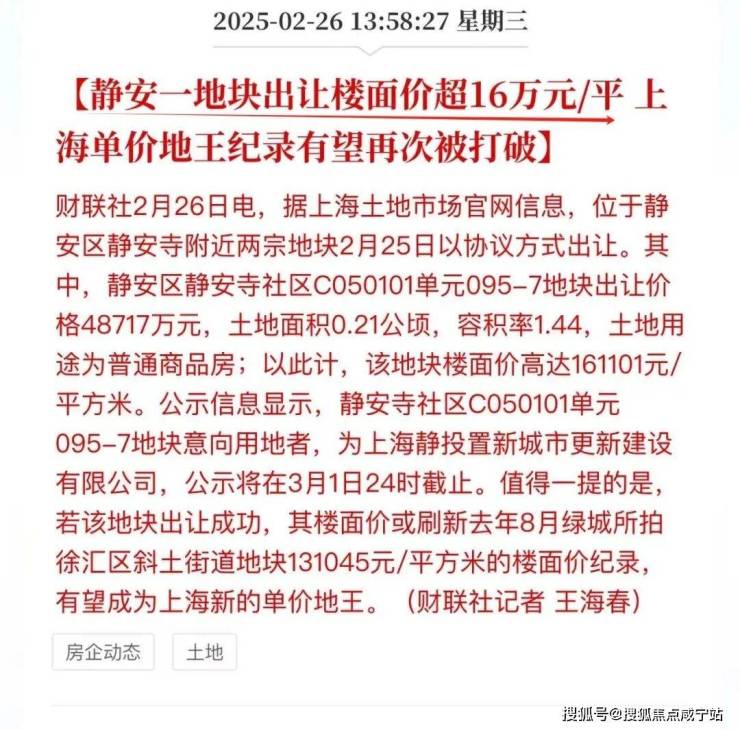 早在2025年2月底,“静安新地王”就成为市场焦点。