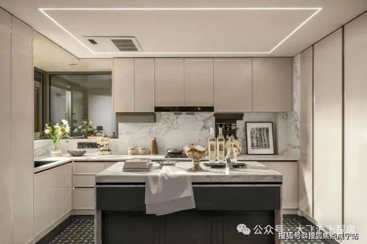 整体动静分区的格局下,U型厨房不只是烹饪场域,更因融入“社交属性”而成为家庭互动的温情角落,烹饪的同时可与客厅的家人交流。
