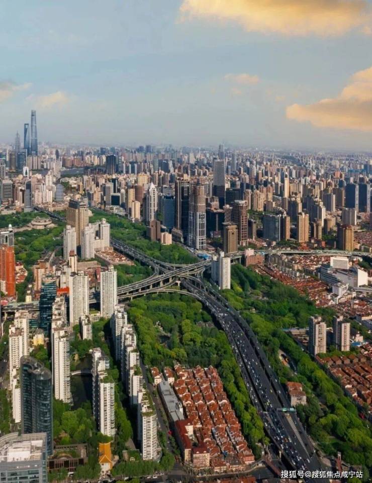 东瞰:延中绿地公园、新天地、陆家嘴“三件套”;