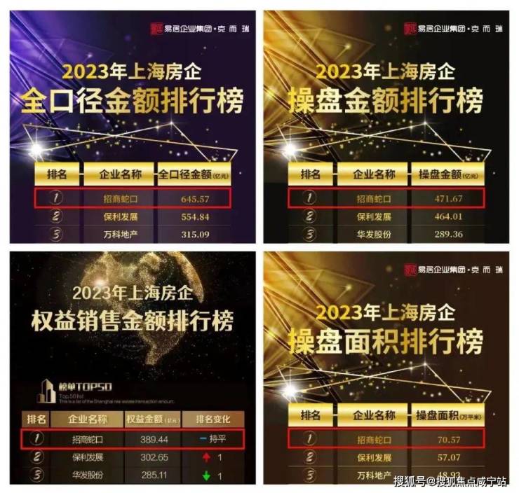 【招商泗泾TOD项目】售楼处电话:400-960-1656 招商蛇口持续展现出逆市增长的趋势。自从2022年稳定地占据上海房地产企业在各个方面的销售冠军之后,招商蛇口在2023年,以将近646亿的业绩再次在上海房地产企业销售排行榜的各个维度中的第一名。