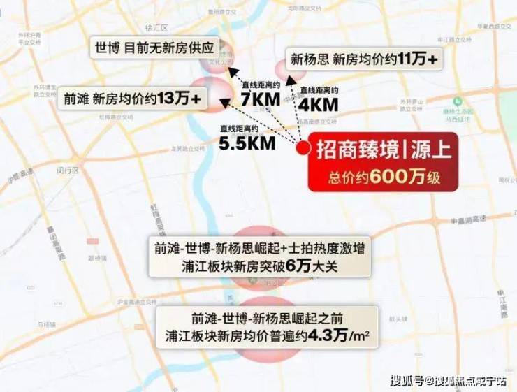 由于前滩-世博-新杨思的崛起,浦江镇在今年年初拍出了一块溢价率约18.97%的宅地,如今的售价高达约6万/㎡+。