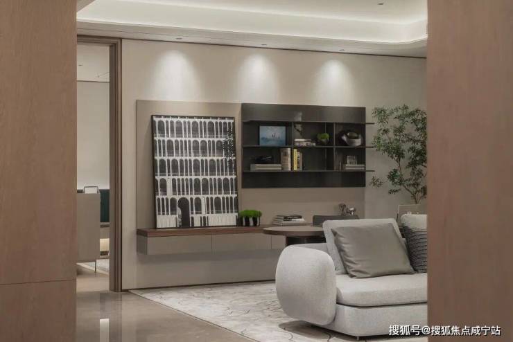 比起中规中矩的直线,弧形施工工艺更复杂、造价更高,却多了几分灵动轻盈!这种弧形的元素不只是在样板间里,在售楼处也能经常看到,比如电梯厅。