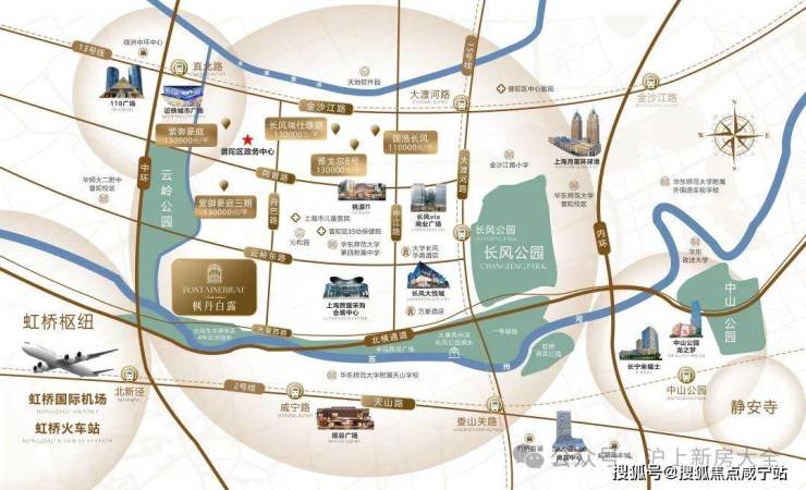 【枫丹白露】普陀长风生态富人区板块新加推,类住宅通燃气法式外立面,86-143㎡,13/15/2号线三轨交汇,得房率高户型方正。